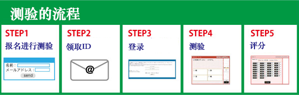 - 报名进行测验:检测电脑终端后,请输入您的姓名和电子邮箱地址。指定接收成绩的电子邮箱时,也可输入其他电子邮件地址。也会向所输入的电子邮箱发送成绩。