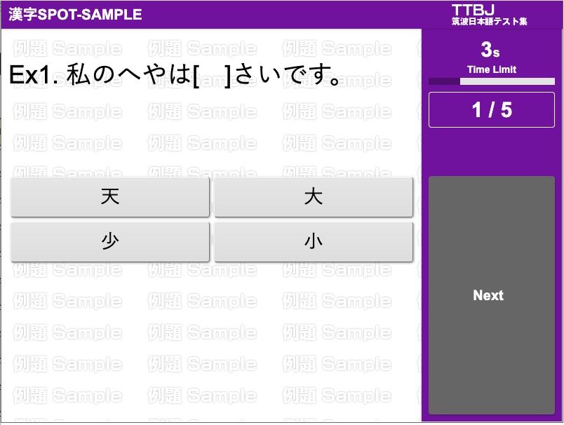 Even if you can understand a kanji word that you read or can visualize the kanji character for a word that you hear if you take time to think about it, it is impossible to utilize your knowledge effectively in real life if you cannot understand it immediately. Because this test was devised with the objective of estimating the kanji vocabulary that examinees can actually use in real life, the response time may seem slightly too short for reading a sentence/phrase while listening to it being spoken, but if you have sufficient Japanese language ability, you should find the response time to be sufficient.