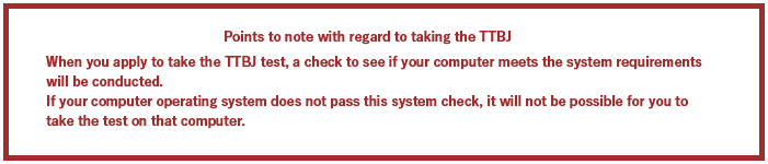 The following system environments are required in order to take TTBJ tests.